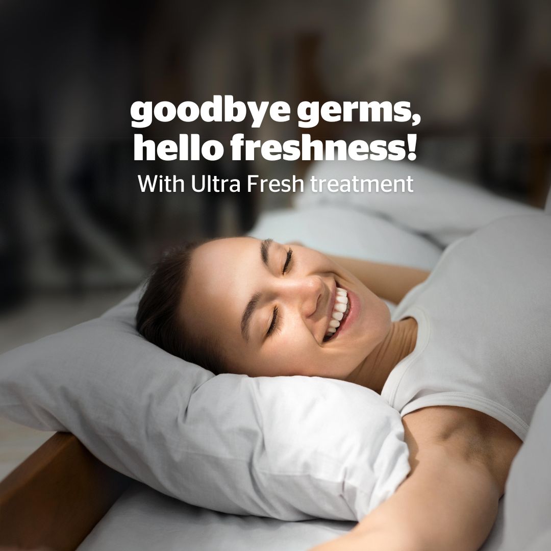 Covers treated with Ultra Fresh to inhibit bacteria, mould, mildew, and dust mites, promoting hygiene and freshness.
