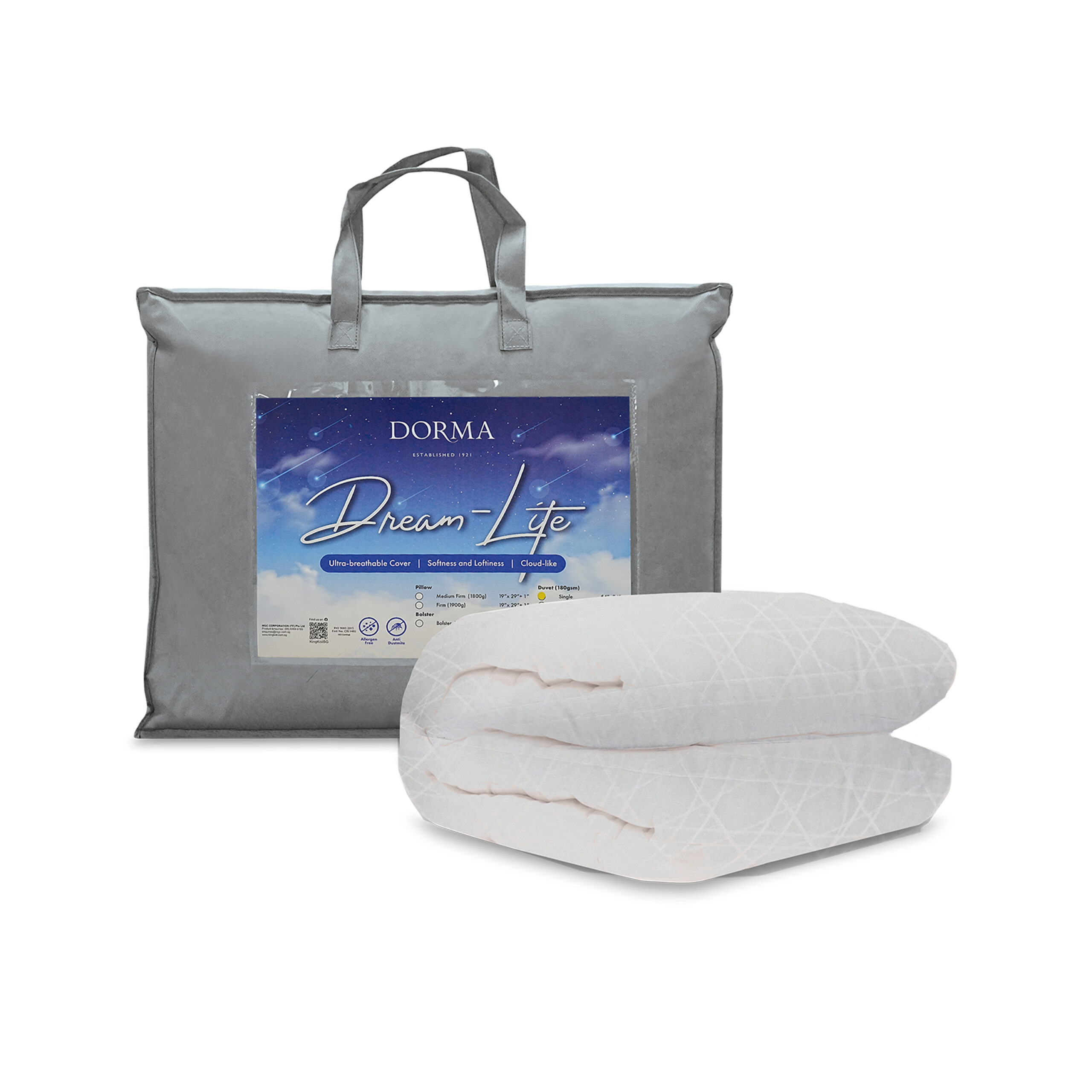 The Dorma Dream-Lite Collection is delightfully fluffy yet firm – perfect for sleepers who want the perfect balance between being cradled and support. The pillow, bolster and duvet covers are made with cotton jacquard fabric with superior air trapping abilities – which makes them fluffy and soft. They also bounce back really well. The Dorma Dream-Lite Collection is also hypo-allergenic – making it suitable for sleepers with allergies or sensitive skin.