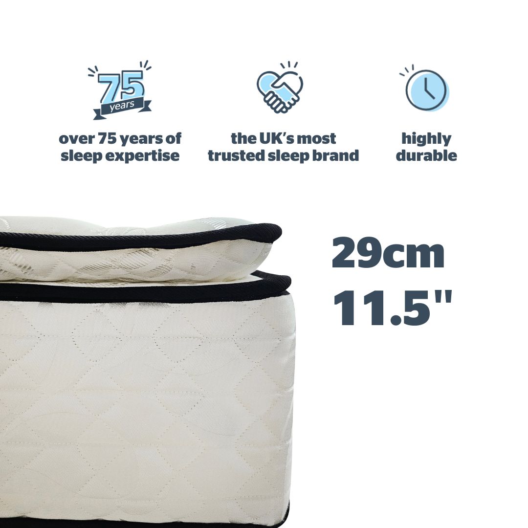 Silentnight’s individual pocketed springs are pre-compressed, to give more specific effect, greater resilience and better support for your back. Individually encased coils and independent coil action minimises disturbance – ensuring on peaceful night’s rest.