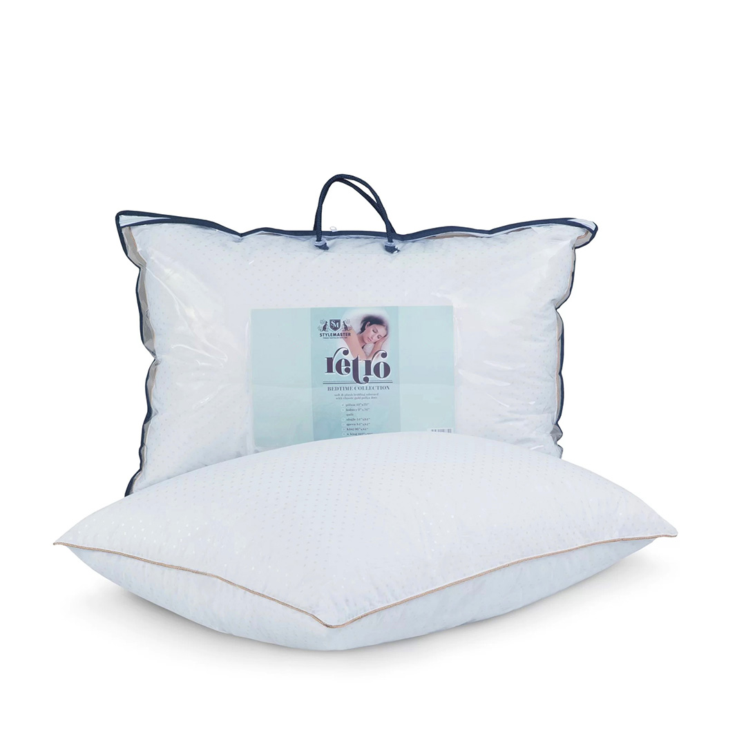 The Retro Bedtime Collection is affordable and a versatile bedding accessory to have in every bedroom. It is delightfully fluffy yet firm – perfect for sleepers who want the perfect balanced being cradled and support. They bounce back really well. The pillow and bolster covers are adorned with gold polka dot. Our StyleMaster Retrotime Collection is hypo-allergenic – making it suitable for sleepers with allergies or sensitive skin.